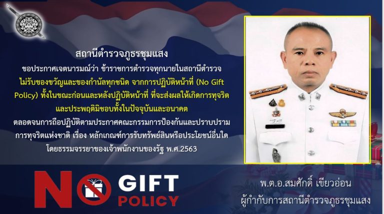 ประกาศ สถานีตำรวจภูธรชุมแสง นโยบายต่อต้านการรับสินบน